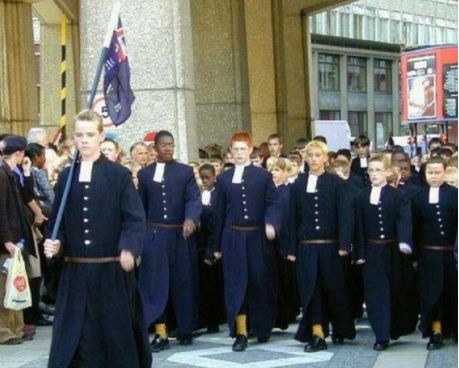 歐洲的校服仍然維持著它一直以為低調(diào)和貴族的傳統(tǒng),被譽(yù)為最正統(tǒng)的校服,沿用了多年的皇室制服款式。英國(guó)校服款式經(jīng)典、簡(jiǎn)潔大方,中學(xué)生必須穿著正統(tǒng)西式校服,男生為正統(tǒng)西裝、正規(guī)皮鞋、需要佩戴領(lǐng)帶,女生也是統(tǒng)一西式正統(tǒng)服裝、正規(guī)女式皮鞋、必須佩戴領(lǐng)花,不論是?;铡⒚被?,無(wú)一不顯示著英國(guó)人特有的風(fēng)度和氣質(zhì)。也不知是歐洲的學(xué)生更嚴(yán)肅還是校方更強(qiáng)硬,他們的態(tài)度似乎是“學(xué)生就要穿得像個(gè)學(xué)生的樣子”。他們對(duì)校服的重視程度也不輸給日本,認(rèn)為校服是培養(yǎng)學(xué)生紀(jì)律意識(shí)最直接的手段。