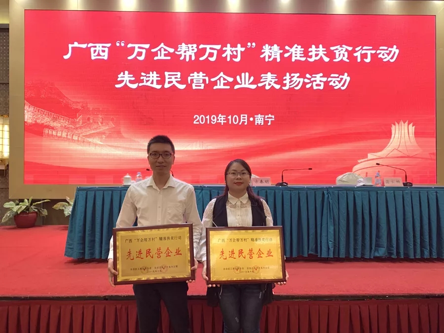 10月17日上午,自治區(qū)工商聯(lián)、扶貧辦舉辦的廣西“萬企幫萬村”精準扶貧行動先進民營企業(yè)表揚活動在南寧隆重舉行。百裕集團:梧州百裕實業(yè)有限公司及河池分公司均榮獲廣西“萬企幫萬村”精準扶貧行動“先進民營企業(yè)”榮譽稱號。