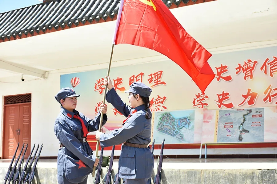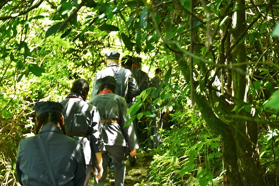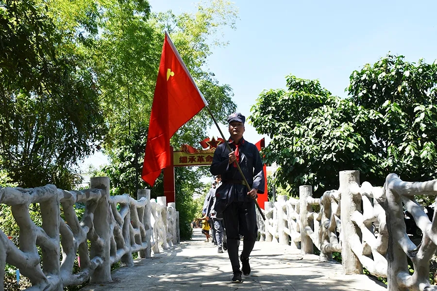當天,參加活動黨員干部懷揣著敬慕與感恩之心,穿上紅軍服戴上紅軍帽,模擬紅八軍建制,編隊整訓,沿著革命先輩的足跡,徒步重走一次紅軍路,舉行簡單的授旗儀式后,學員們高舉旗幟,從水隴徒步至甫茶,追憶紅軍革命精神,傳承紅色精神!