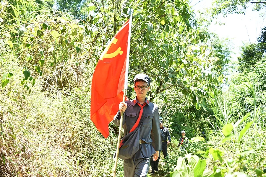 途中,黨員干部了解了鄧小平領(lǐng)導的紅八軍和左江革命委員會舉行反帝斗爭、張云逸同志在平馬勝利會師等龍州起義歷史故事,唱著紅歌,走在蜿蜒崎嶇的山路上,黨旗迎風飄揚,黨員干部體驗了革命的艱辛和困苦,同時感受紅軍無所畏懼、勇往直前的使命和擔當。