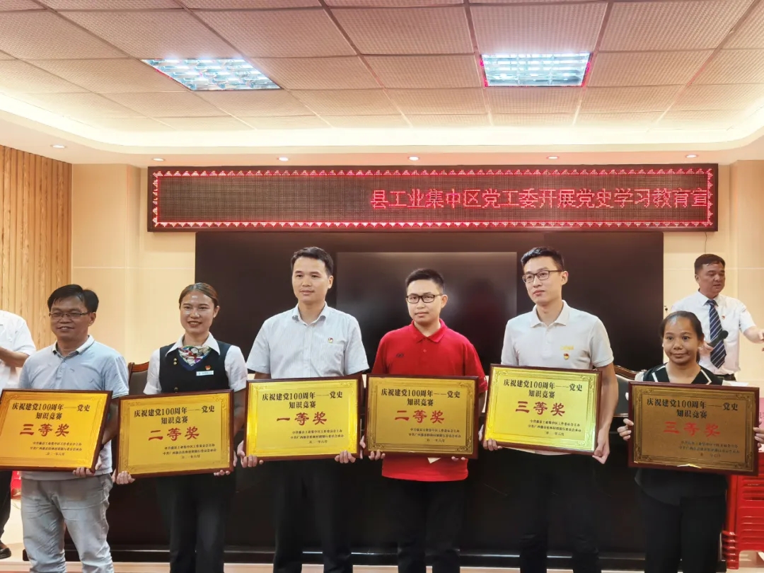 同時,黨支部還參與藤縣工業(yè)集區(qū)黨工委聯(lián)合舉辦的“黨史知識競賽″,并榮獲三等獎!