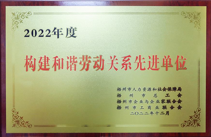 根據(jù)梧州市人力資源和社會保障局、梧州市總工會、梧州市企業(yè)與企業(yè)家聯(lián)合會、梧州市工商業(yè)聯(lián)合會公布了《2022年度梧州市構建和諧勞動關系先進單位名單》的通知,表彰了一批有力維護和諧勞動關系、切實保障職工權益的優(yōu)秀企業(yè),百裕世紀(集團)有限公司光榮在榜。