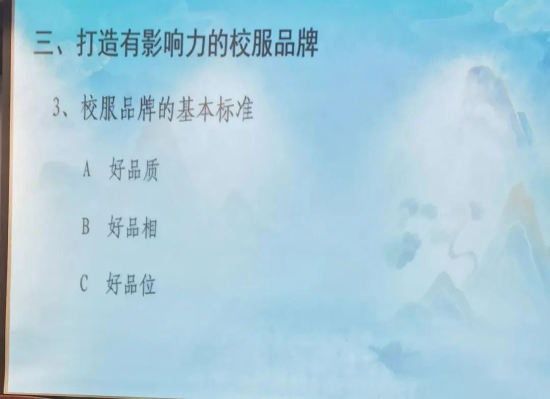 跟大家分享構(gòu)建校服品牌高質(zhì)量發(fā)展的一些感悟:堅持、堅守、堅信、制造、創(chuàng)造、智造。