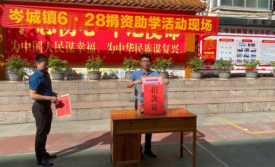 在岑城鎮(zhèn)6.28捐資助學(xué)活動現(xiàn)場中百裕集團(tuán)捐款10000元,同時(shí)捐款10000元用于岑城鎮(zhèn)脫貧攻堅(jiān)事業(yè),助力扶貧攻堅(jiān)戰(zhàn)役!